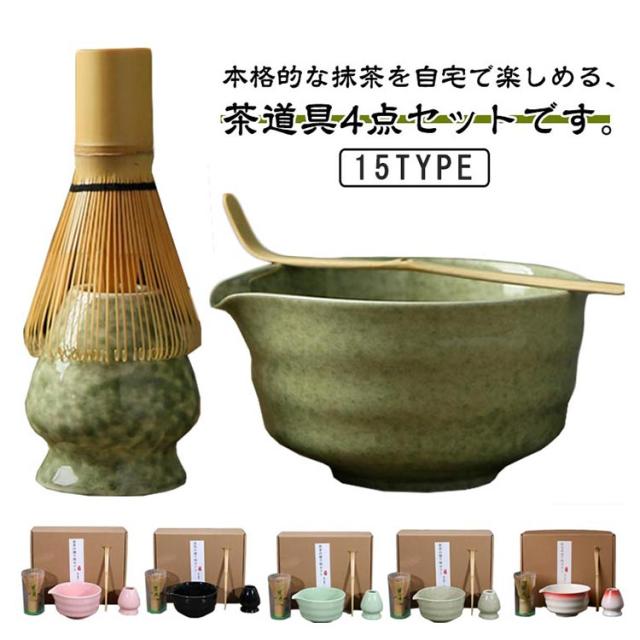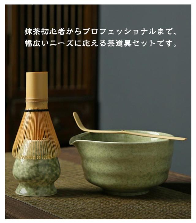 抹茶セット 竹製 茶道具 陶器 4点セット 茶具セット 茶器 和風 抹茶碗 茶杓 茶筅 茶筅立て 家用茶器 茶道ツール 家庭用 プレゼント 贈り物 母の日 初心者