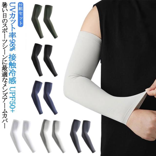 大きいサイズ ロング 日焼け対策 UV アームカバー メンズ アウトドア 男用 アームカバー UVカット UPF50+ 冷感アームカバー スポーツ 自転車 ゴルフ 野球 薄手 紫外線対策 2組セット ズレ落ち防止 滑り止め 軽量 2組セット フィット感