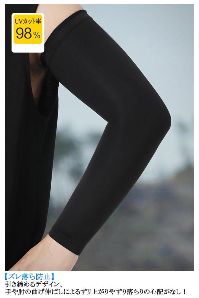 | UVカット率98% 接触冷感 UPF50+ 暑い日のスポーツシーンに最適なメンズアームカバー 2組セット 【触った瞬間ひんやり】接触冷感の材質を採用して、汗をかいたり水に触れたりした時、氷水と洋の満れが熱の作用を気化させ、気化吸熱原理に基づいて。冷却効果があります。 【UPF50+紫外線遮断率?98%で肌を守る!】日差しの強い時期の紫外線から肌を守ることが期待できる日焼け対策として!野外での活動にもおススメ! 【ズレ落ち防止】引き締めるデザイン、手や肘の曲げ伸ばしによるずリ上がりやずり落ちりの心配がなし! 【伸縮性・通気性抜群】伸縮性にも優れ多様な腕にもフィット◎ さらに通気性も抜群で速乾性も抜群なので快適に着用できます! 【毛玉になりにくい】高品質なアイスシルク生地を使用することで引っかかりによる毛玉を防止します。 【色んな場面で使いやすい!】シンプルなデザインで普段使いはもちろんスポーツ等様々なシーンで使いやすい!夏場でも野外での活動快適に過ごせるようサポート! | |