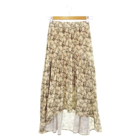 【中古】フーズフーチコ プリーツスカート マーメイドスカート ロング 切替 ボタニカル柄 花柄 F ベージュ