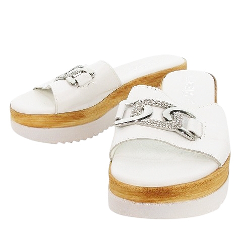 【中古】CINZIA Soft 厚底サンダル ミュール ハイヒール レザー シルバー金具 ビジュー 36 23cm 白 ホワイト