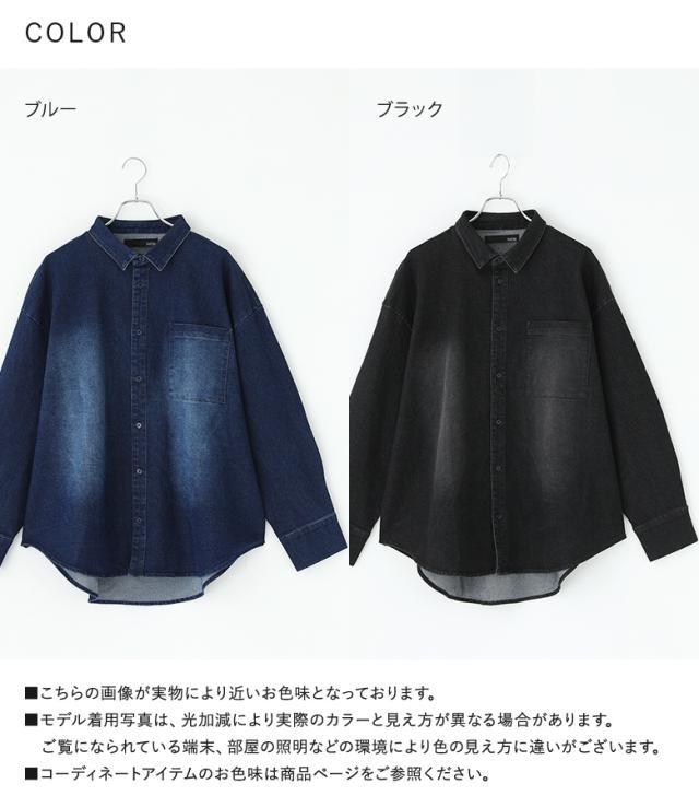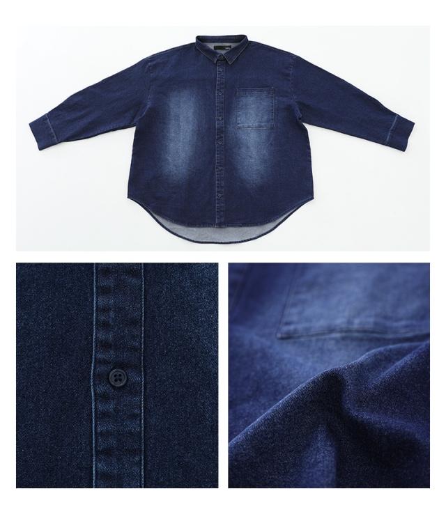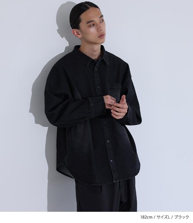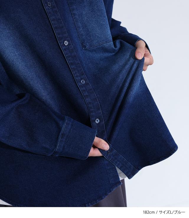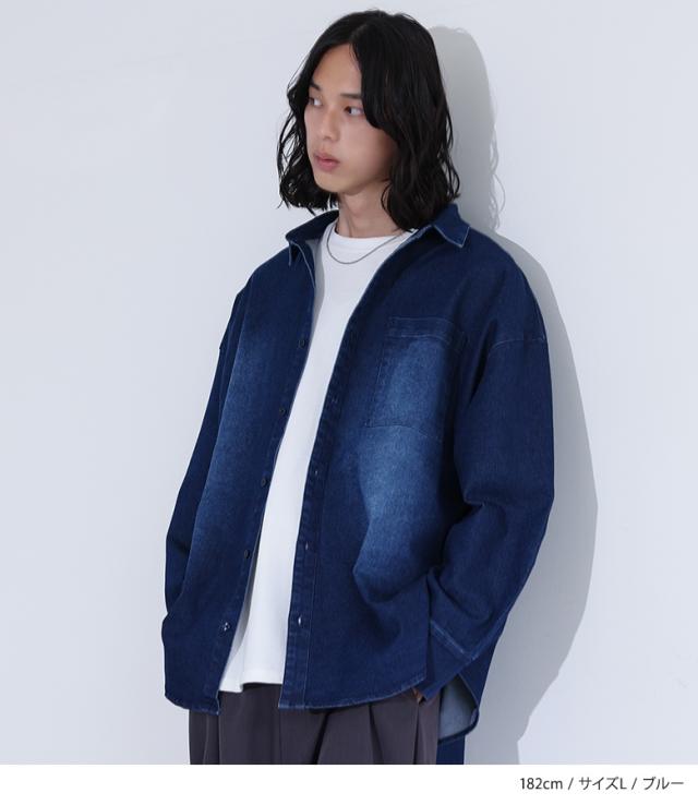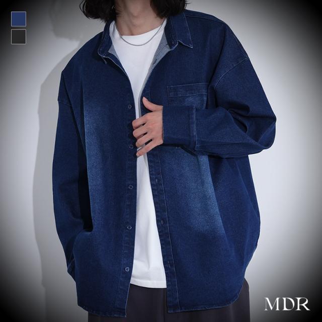 『MDRオーバーサイズストレッチデニムシャツ』【メール便不可】【20】[デニムシャツ メンズ トップス 長袖 レギュラーカラー 羽織 ストレッチ オーバーサイズ レイヤード 重ね着 春 秋 冬 ロングシーズ]