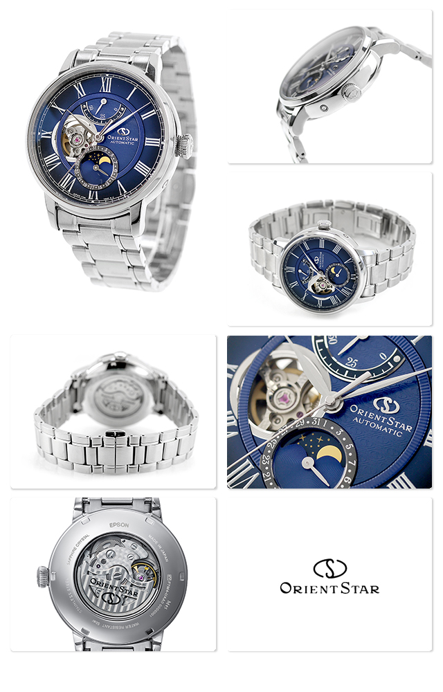 オリエントスター Classic Collection M45 F7 Mechanical Moon Phase 自動巻き 腕時計 ブランド メンズ ムーンフェイズ オープンハート ORIENT STAR RK-BT0002L ネイビー おしゃれ 防水 プレゼント 男性 実用的