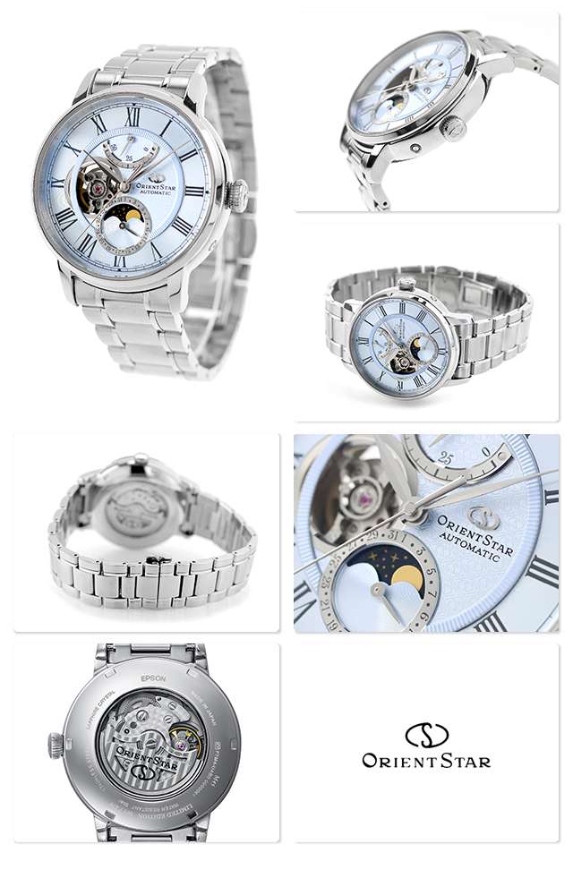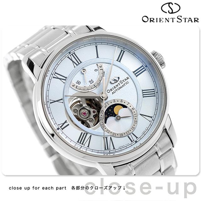 オリエントスター Classic Collection M45 F7 Mechanical Moon Phase 自動巻き 腕時計 ブランド メンズ 数量限定 ムーンフェイズ オープンハート 替えベルト ORIENT STAR RK-BT0003L ブルー おしゃれ 防水 プレゼント 男性 実用的