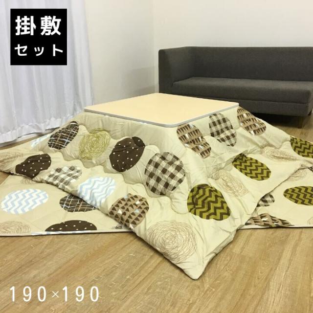 リオン 薄掛 こたつ布団 掛敷セット ピーチスキン なめらか 冬 暖房 あたたかい 190×190cm ベージュ