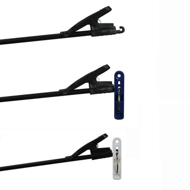 ●アーム先端にピンチを吊り下げられるフック付き。