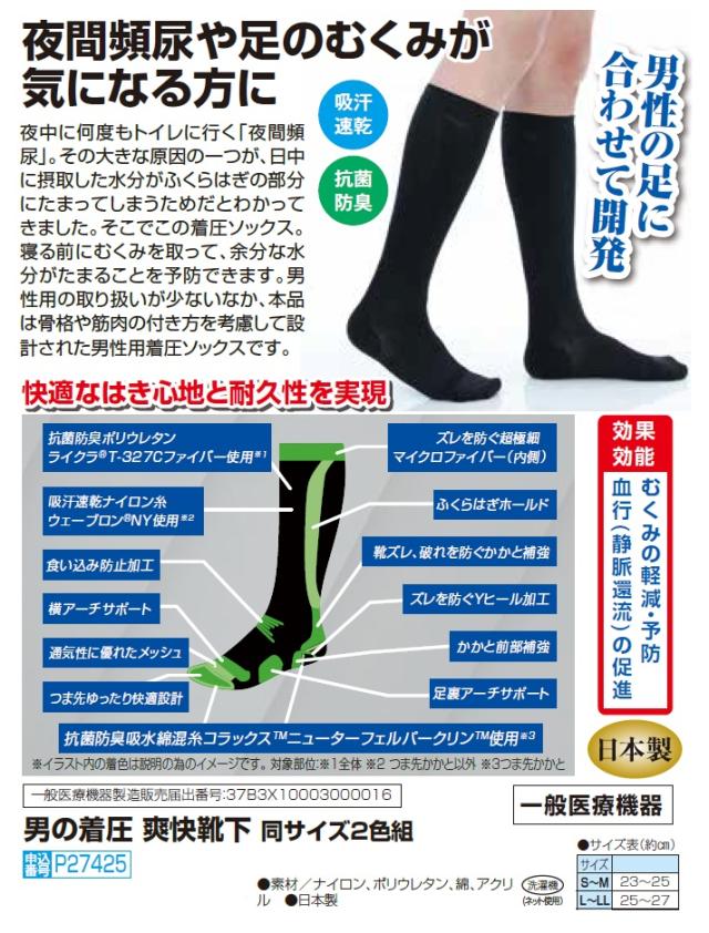 日本製 男の着圧 爽快靴下 2色組 着圧ソックス 着圧 靴下 メンズ 紳士 シニア 男性 大人 むくみ 対策 吸汗速乾 抗菌防臭 くつ下 くつした 黒 ブラック