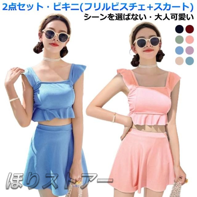 | 2点セット・ビキニ(フリルビスチェ+スカート)。シーンを選ばない・大人可愛い。 触り心地の良い生地感でビーチやリゾートでも浮かないエレガントな女性を演出してくれます。 落ち着いた印象で程よく体型もカバーしてくれるビキニです。 パッド付きので、安心に動けます◎ 夏場のウォータースポーツの際、海、ジム、プールやビーチ、温泉、スイミング、サイクリング、ダイビングなどの様々なシーンで大活躍。 | |
