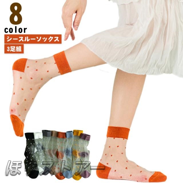 | 【シースルーソックス】【3足組】【全8色】 透け感がおしゃれなシースルーソックス。 春?秋のデイリーユースに! シンプルのデザインで年齢別問わず履けます♪ 薄くて履き心地抜群! | |