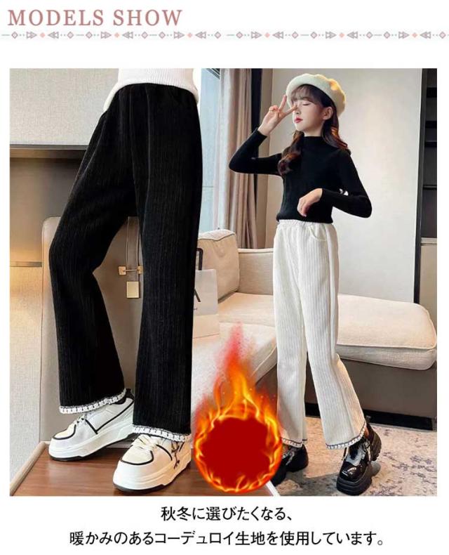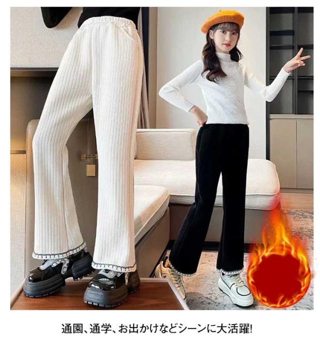 女の子 暖かい フレアパンツ 無地 ベルボトム 裏起毛 リブ 秋冬 シンプル カジュアルパンツ ロングパンツ 子ども服 長ズボン 防寒 裏起毛 保育園 小学生
