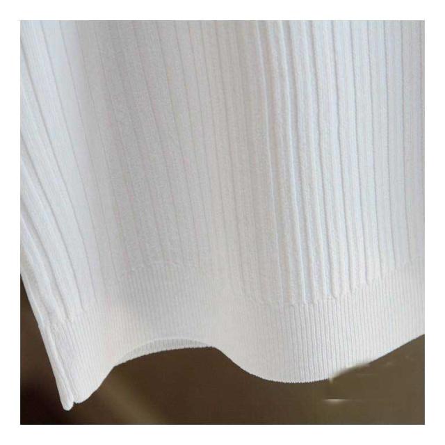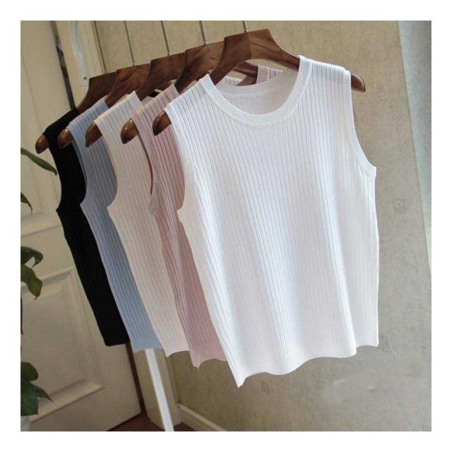リブニット タンクトップ ノースリーブ 冷感 プチラウンドネック サマーニット 韓国ファッション 送料無料