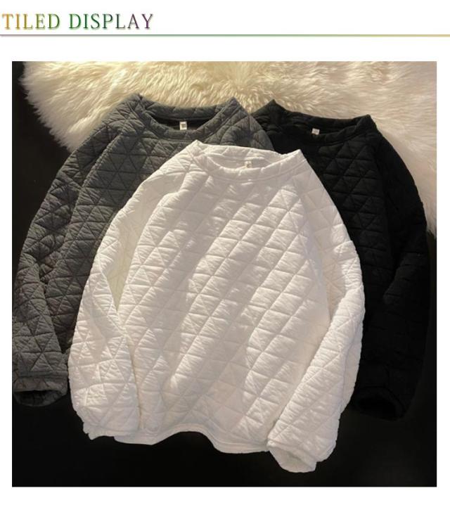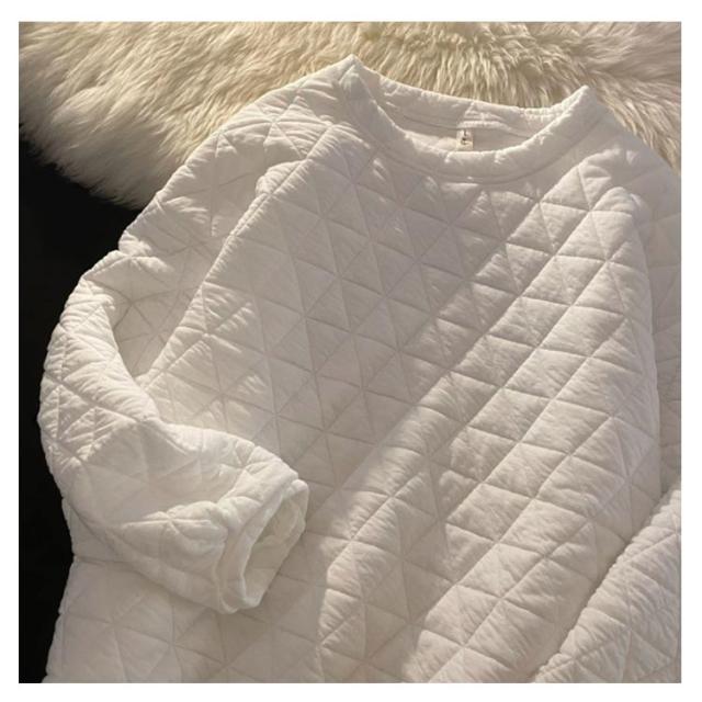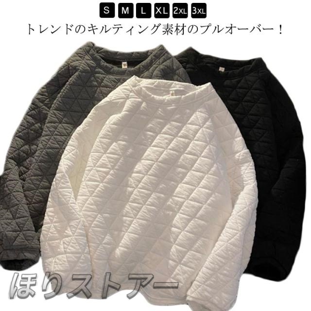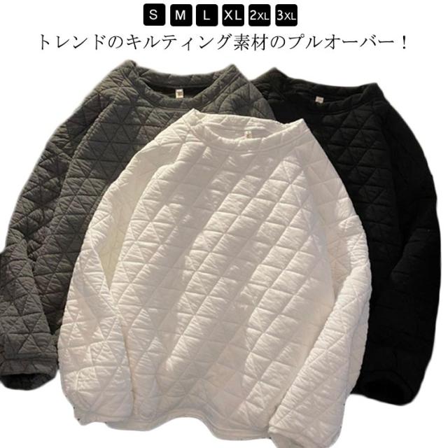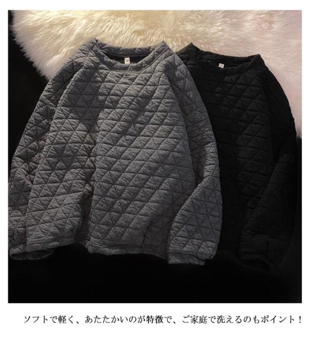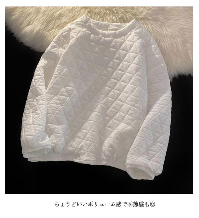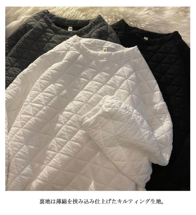 プルオーバー トレーナー キルティング クルーネック トップス キルト Tシャツ スウェット 長袖 中綿 厚手 プルオーバー キルティング 丸首 防寒 保温 カジュアル 立体 女性 秋