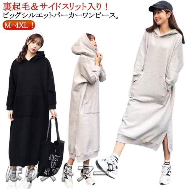 | M-4XL!裏起毛&サイドスリット入り!ビッグシルエットパーカーワンピース。 スウエット生地ならではの柔らかさと通気性を発揮します。 アウトドアなどのレジャー服や部屋着にしても可愛い! カジュアルなフード付きが女の子らしさをアピールする☆ 膝下にかかるロング丈でしっかりと体型カバーして、スニーカーやショートブーツなどとも好相性◎ | |