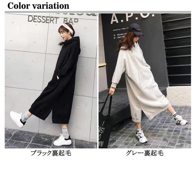 送料無料 プルオーバー ワンピース 厚手 パーカーワンピース 裏起毛 フード付き ワンピース ロングパーカー レディース ワンピ ロング丈 長袖 スウェット トレーナー パーカワンピ あったか 無地 防寒 ゆったり ビッグシルエット 着痩せ 春 秋
