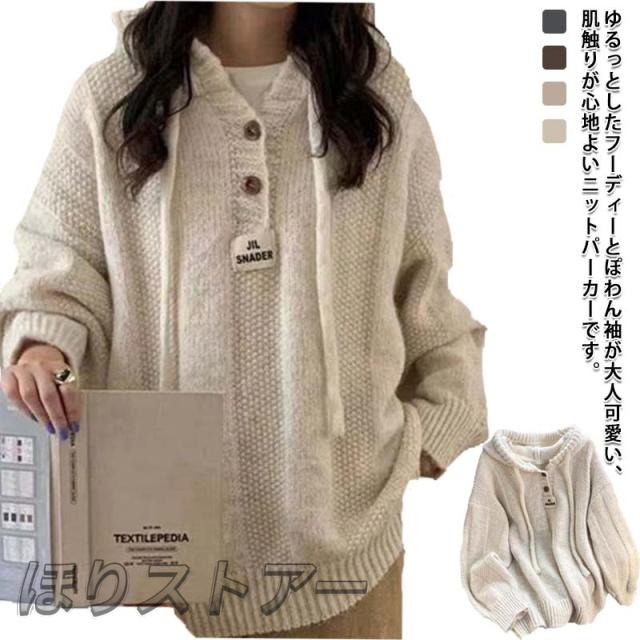レディース もこもこパーカー ゆったり パーカー パーカー セーター ドルマン トップス 長袖 無地 秋冬 プルオーバー フーディニット ぽわん袖 ニット ニットパーカー 大きいサイズ 体型カバー 着回し 無地