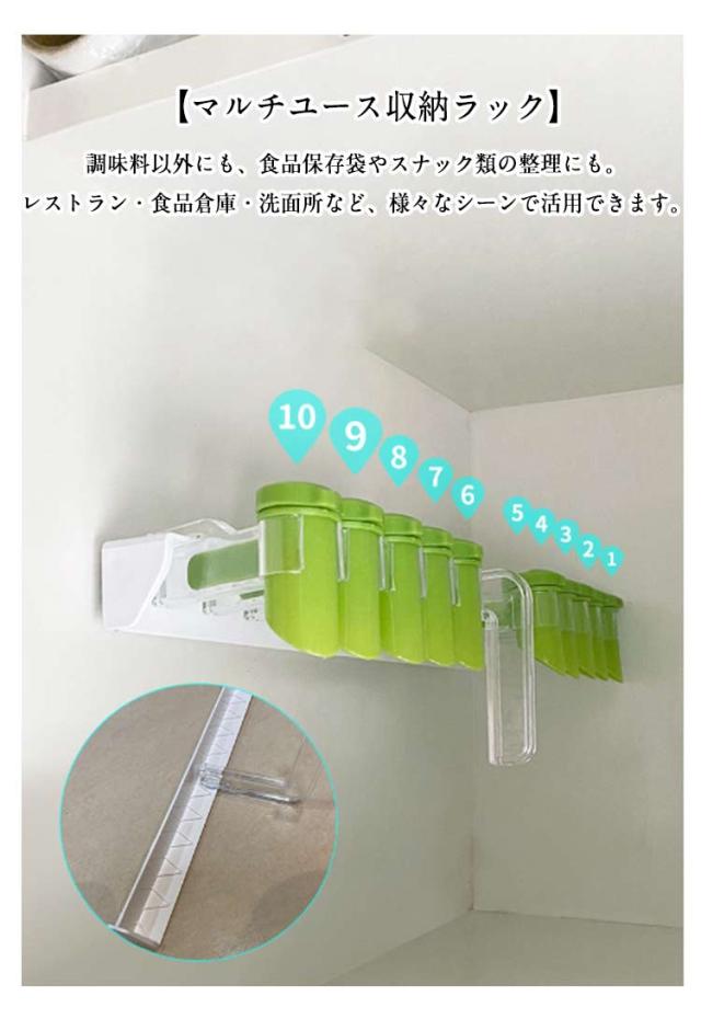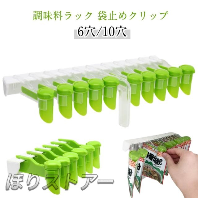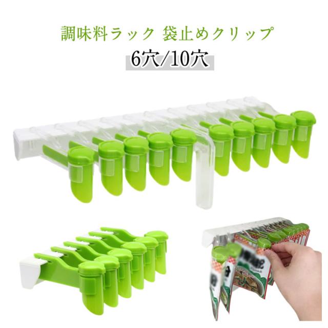 調味料ラック 袋止めクリップ 【6穴/10穴】キッチン 壁掛けスパイスラック 調味料収納ラック 高さ調整可能 壁 収納棚 パンチフリースパイスバッグ収納ラック 台所収納 多機能 省スペース お手入れ簡単 吊り下げ式オーガナイザーシェル 防湿 酸化防止 鮮度保持 多機能
