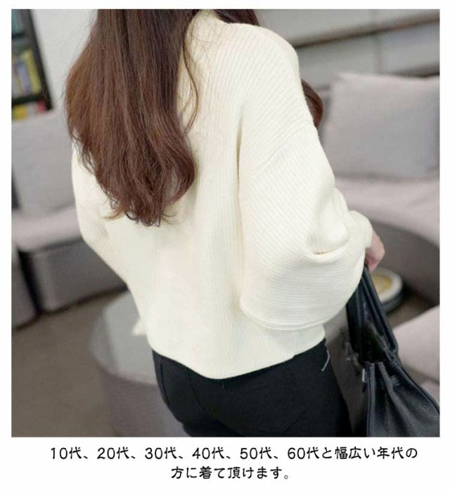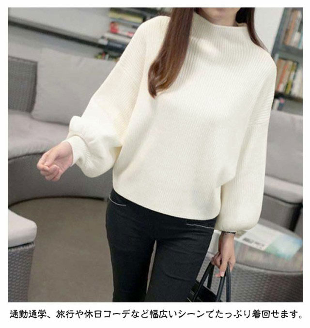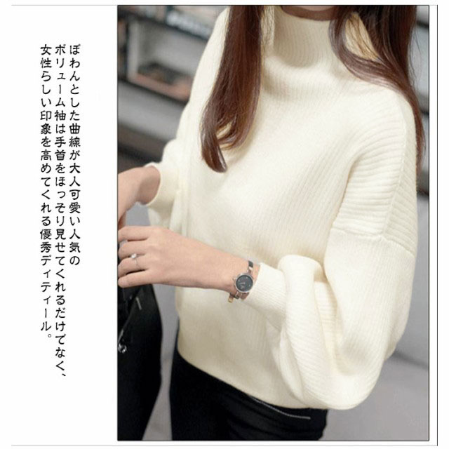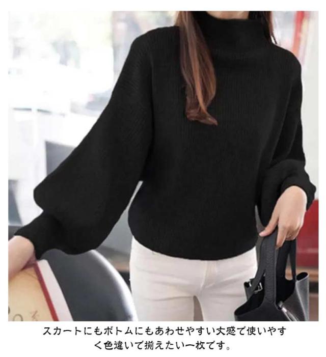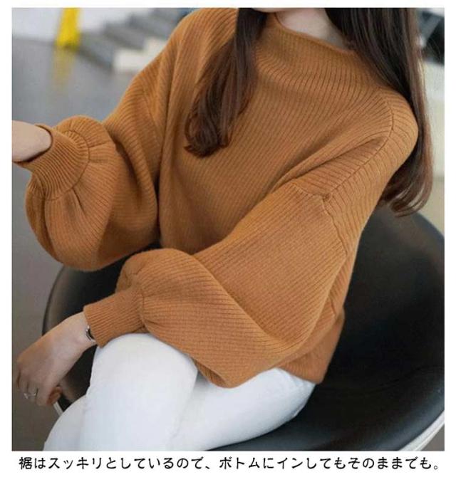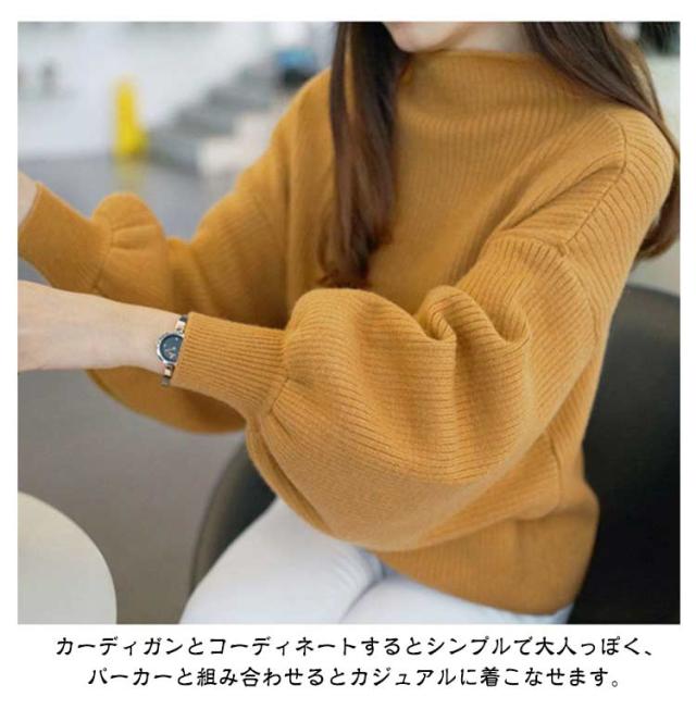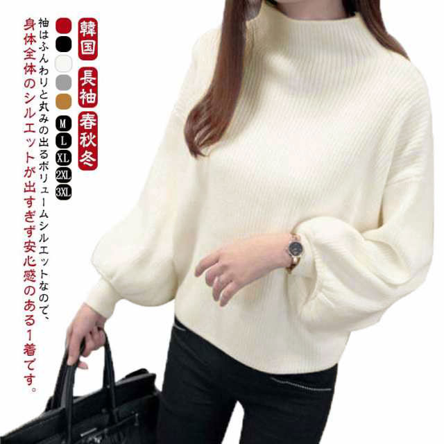 バルーン袖 長袖 レディース ローゲージ リブ バルーンスリーブ 大きいサイズ トップス ゆったり ハイネック リブ 無地ニット タートルネック シンプル 韓国ファッション きれいめ 20代 30代 ニットセーター