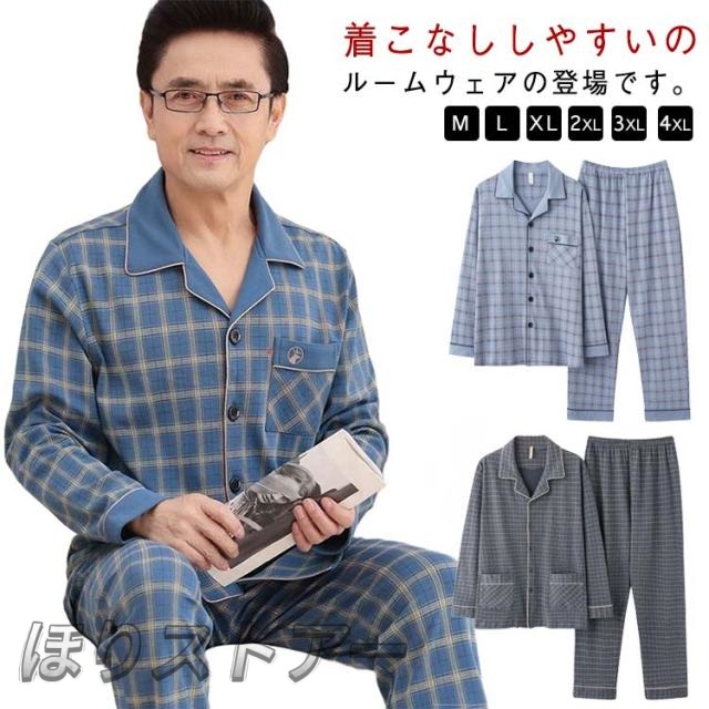 長袖 パジャマ メンズ 70代 男性 ルームウェア セットアップ 高齢者 シニア 80代 襟付き 60代 秋 上下セット 前開き 敬老の日 プレゼント 秋物 冬 ナイトウェア 部屋着 寝間着 チェック柄 長袖パジャマ 上下 シニアファッション 長袖 秋服 100%綿