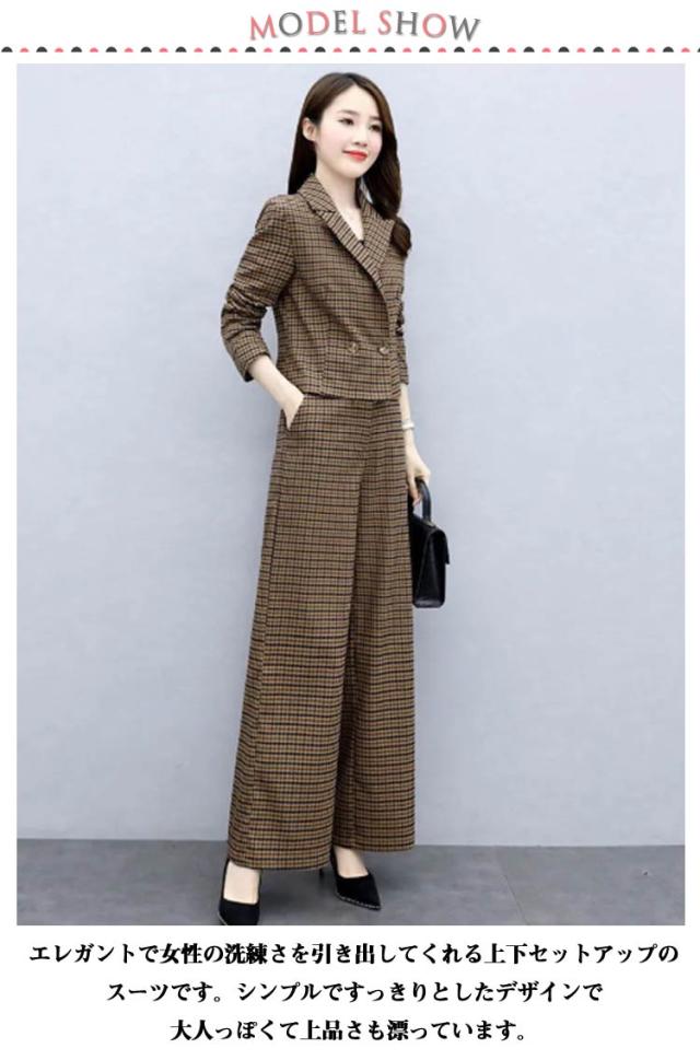 スーツ ストレッチ スーツ 洗える ジャケット ワイドパンツ ビジネススーツ パンツスーツ レディース 春 女性 リクルートスーツ レディーススーツ 格子柄 大きいサイズ フォーマル 通勤 秋冬 七五三 入園式
