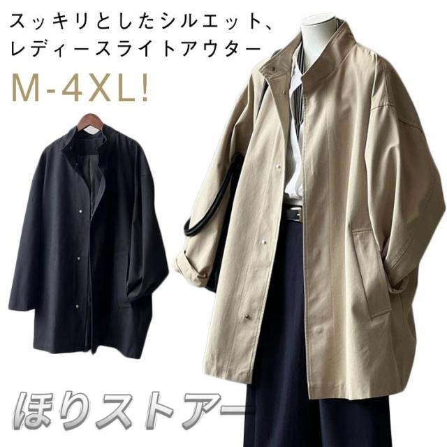 春秋 体型カバー スプリングコート スタンドカラー トレンチコート 女性 アウター トレンチ ゆったり ライトアウター 大人 ロング丈 オーバーサイズ レディース 羽織 大きいサイズ スタンドカラー ロング 秋 通勤 きれいめ 着?せ 無地 シンプル