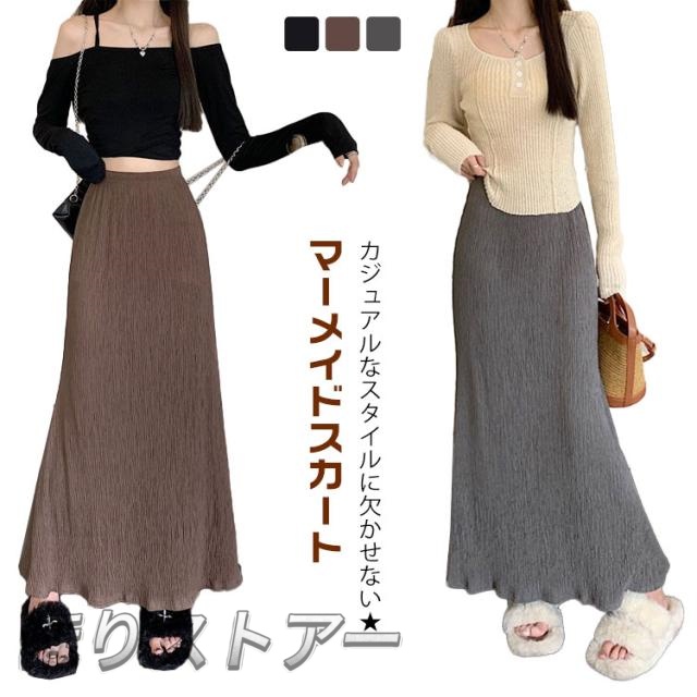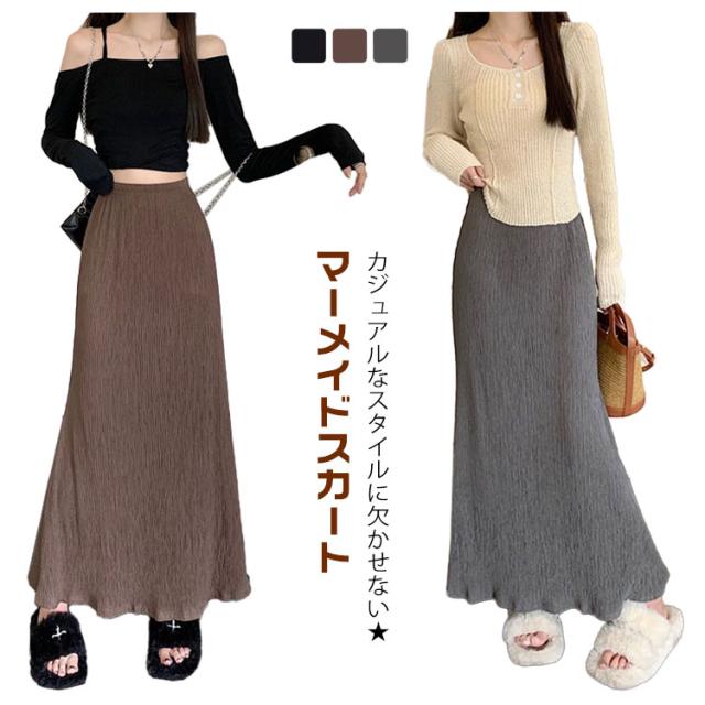 マーメイドスカート ミモレ丈 ロングスカート フレアスカート きれいめ Aライン マキシスカート タイト タイトスカート きれいめ おしゃれ ウエストゴム ハイウエスト 体型カバー おしゃれ 無地 シンプル レディース