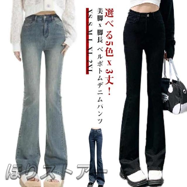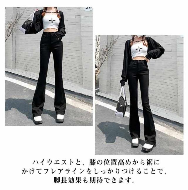 ベルボトム デニムパンツ レディース ブーツカット ジーンズ 9分丈 10分丈 12分丈 ストレッチ ハイウエスト フレアパンツ 無地 ボトムス ジーパン 美脚 脚長 きれいめ おしゃれ カジュアル 春夏 秋冬韓国ファッション ボトムス 送料無料