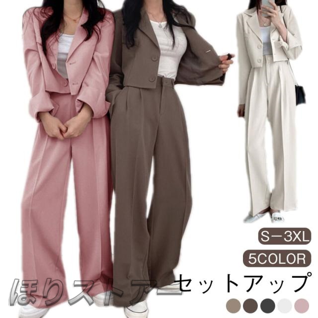 スーツ ショート丈 ロングパンツ ジャケット レディース 2点セット テーラードジャケット カジュアル セットアップ カジュアルスーツ スーツ ビジネススーツ オフィス パンツスーツ 春秋 通勤 ワイドパンツ 入学式 卒業式 お宮参り 仕事服 面接 リクルート