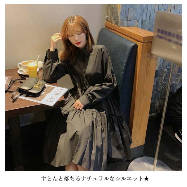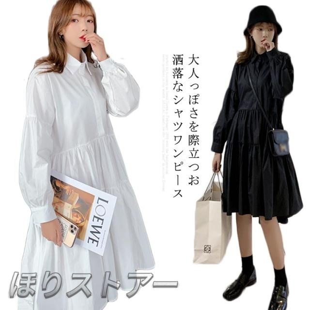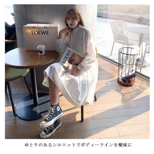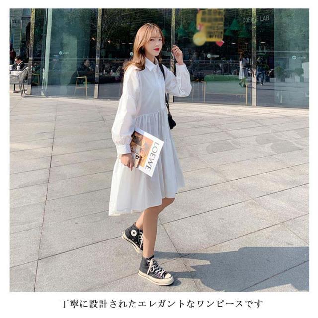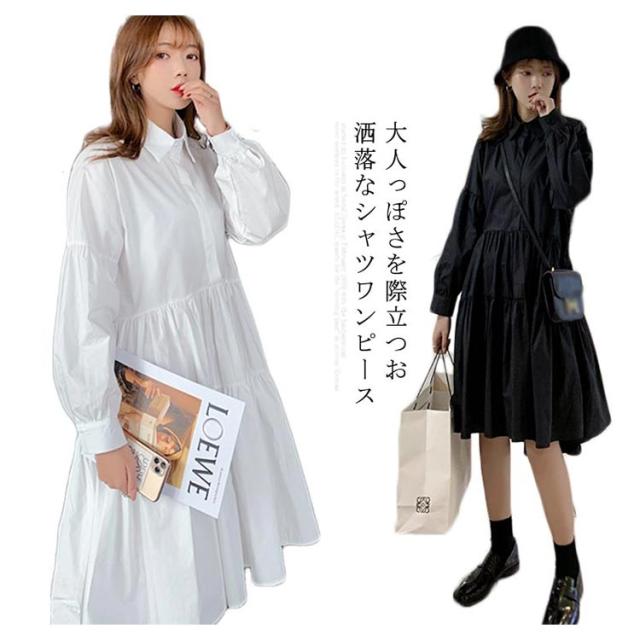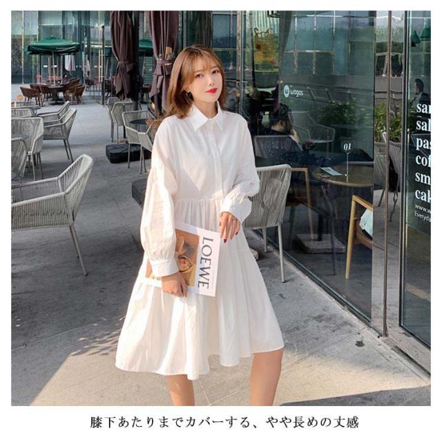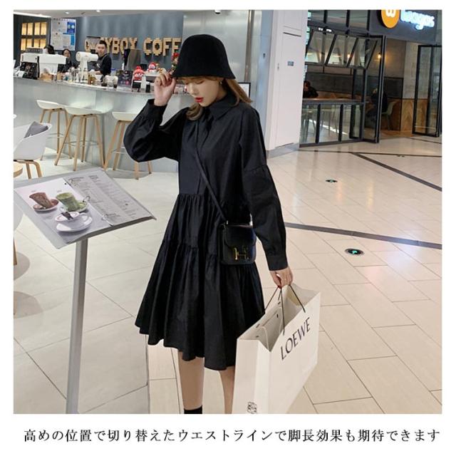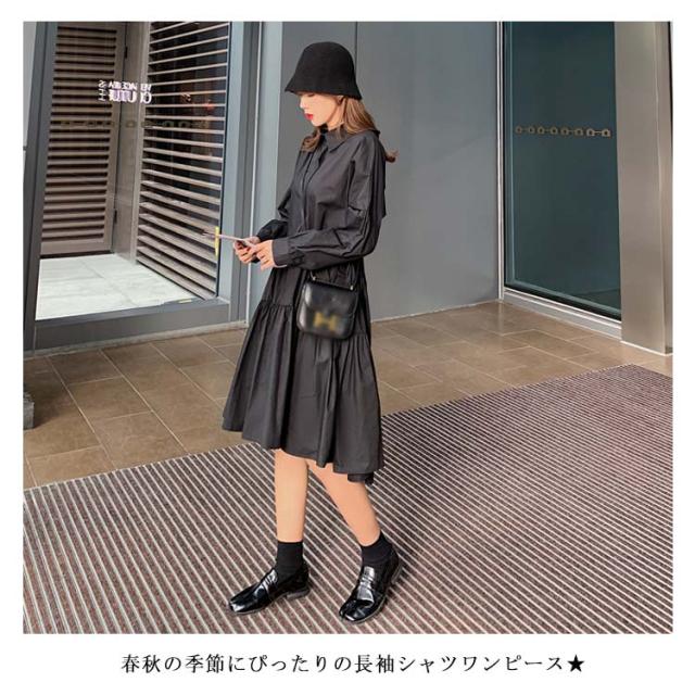 ワンピース レディース ミディアムワンピース 膝下丈ワンピース 長袖 シャツワンピース ハイウエスト 折り襟 無地 不規則 キレイめ ゆったり カジュアル こなれ感 大人 春秋 春新作