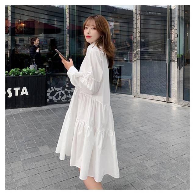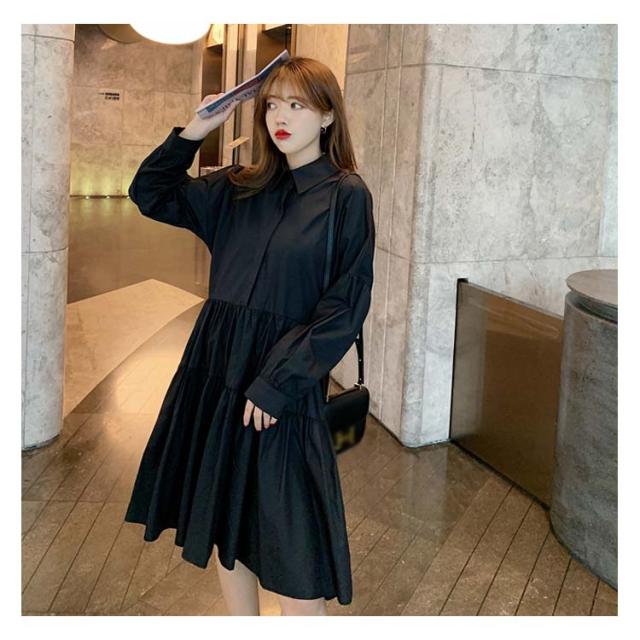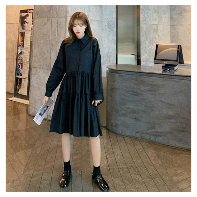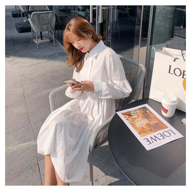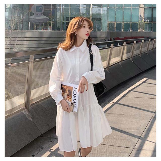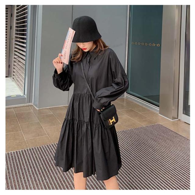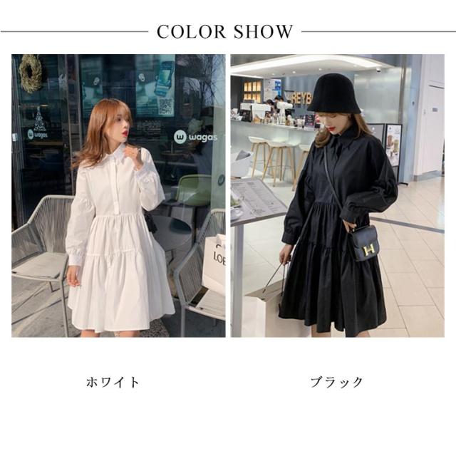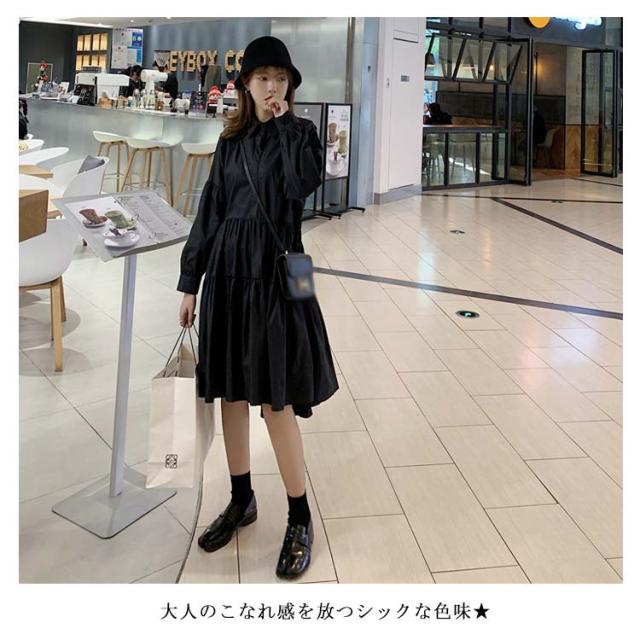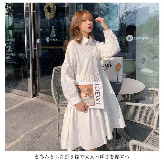 ワンピース レディース ミディアムワンピース 膝下丈ワンピース 長袖 シャツワンピース ハイウエスト 折り襟 無地 不規則 キレイめ ゆったり カジュアル こなれ感 大人 春秋 春新作