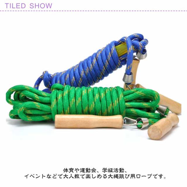 | 【2本セット】 3m/5m/7m/10m!体育や運動会、学級活動、イベントなどで大人数で楽しめる大縄跳び用ロープです。 グリップは木製なので手になじみやすく、痛くなりにくい設計となっています。 木製グリップと縄の接続部は360°回転する金具で留められているので縄のねじれを防ぐ造りとなっております。 | |