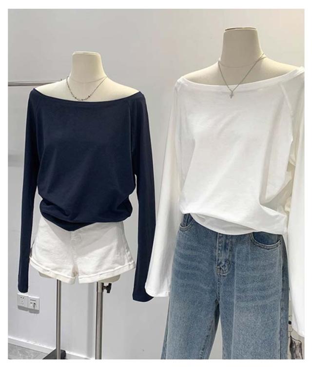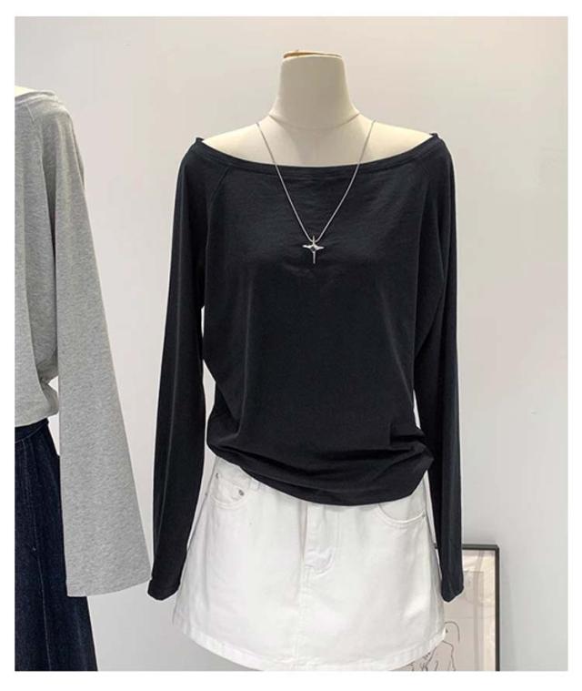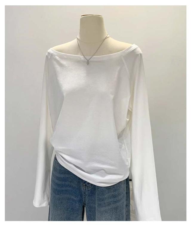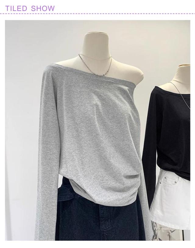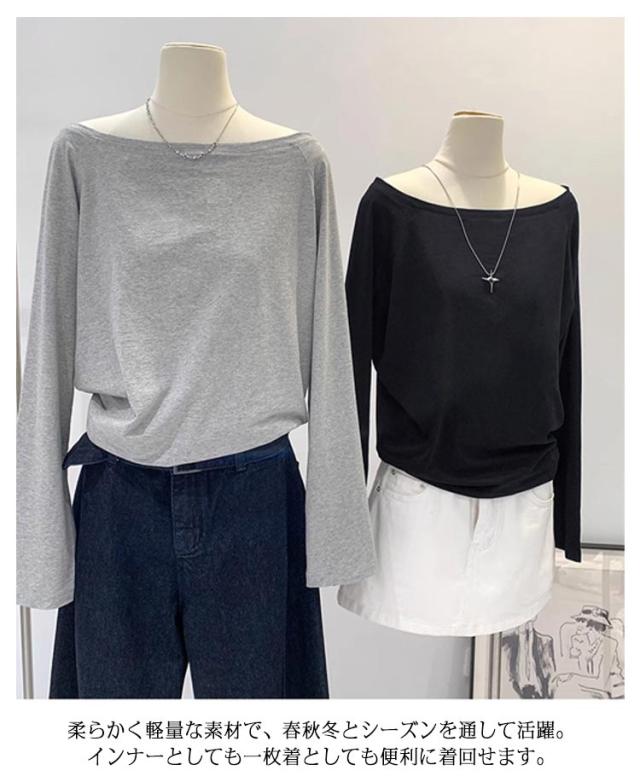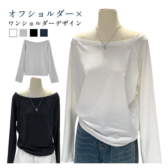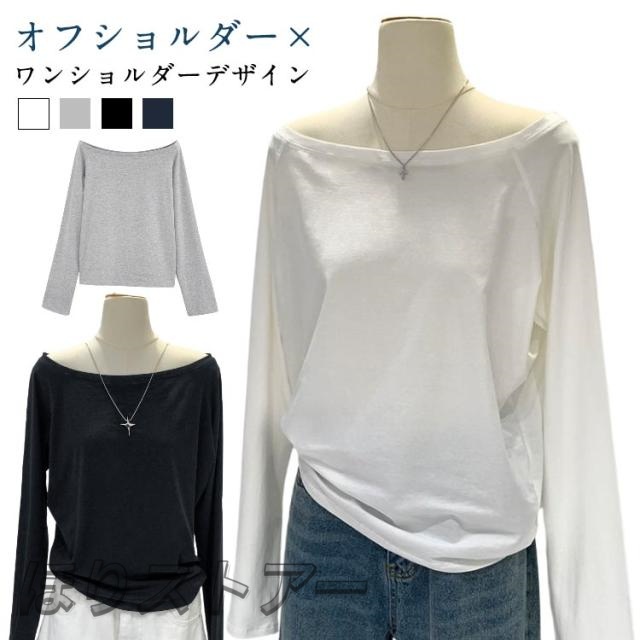 カットソー 秋 無地 Tシャツ レディース 肩出しTシャツ 春 学生 ワンショルダー カジュアル シンプル 体型カバー 長袖 ゆったり 冬 インナー 大人可愛い 快適 薄手 柔らかい 軽量 オフショルダー おしゃれ トップス 通勤