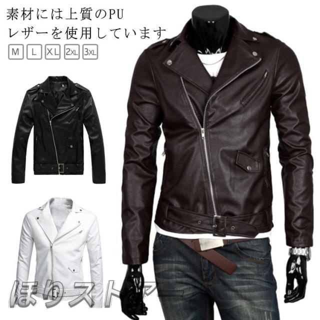 防風 レザーコート 革ジャン ブラック ブラウン 革ジャン ホワイト アウター 革ジャン クラシックPUレザー メンズ レザー革ジャンパー メンズ レザージャケット ライダースジャケット ジャケット コート 革ジャン PU 本格