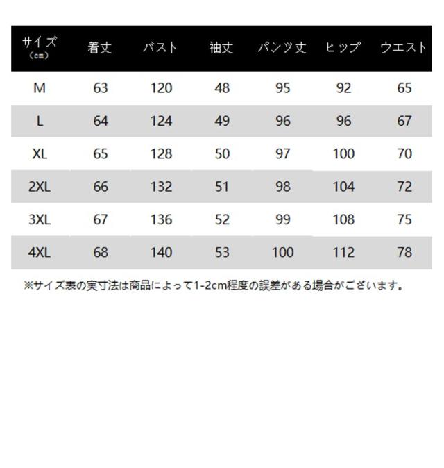 | サイズ | M L XL 2XL 3XL 4XL |