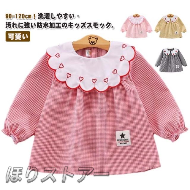 | 90-120cm!洗濯しやすい・汚れに強い防水加工のキッズスモック。 お洋服のような可愛いデザインの長袖スモック、女の子が大好きに間違いなし。 可愛いスカラップ襟に繊細な刺繍が施され、まるでおしゃれなブラウス。 外出時恥ずかしくないおしゃれにスモックを着用できます。 長袖タイプなので、お洋服はいつでも清潔にいられる。 胸部分は防水加工で、お食事など時もお洋服を汚せず安心。 すっぽり被るだけで可愛く汚れ防止◎ お家はもちろん、幼稚園や保育園でも大活躍に間違いなしです。 | |