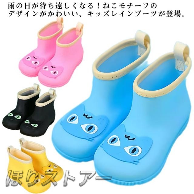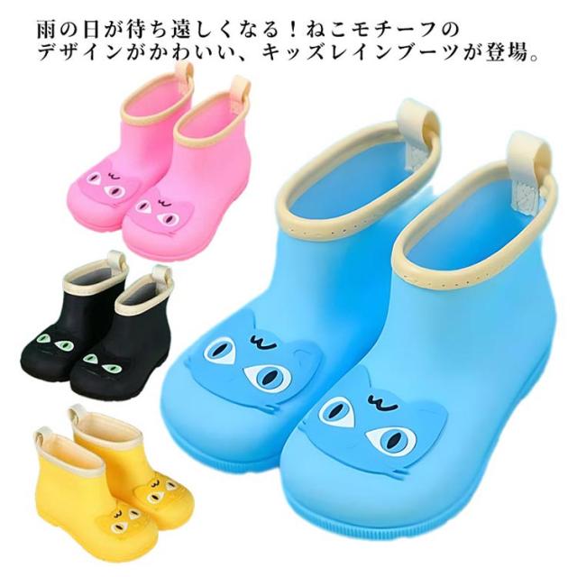 レインブーツ ベビー ねこ 雨靴 長靴 雨具 女の子 防滑 靴 無地 雨対策 雨用 防水 キッズ 猫 ユニーク アニマル 動物 パイピング 長靴 かわいい 可愛い 男の子 おもしろい おしゃれ 履きやすい 園児 キッズ