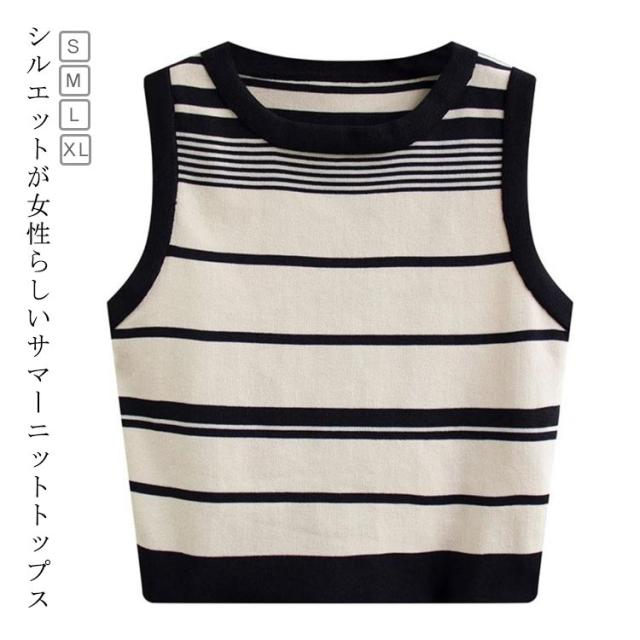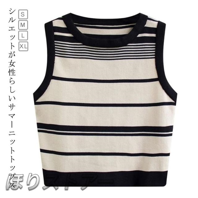 タンクトップ きれいめ キャミソール サマーニット ノースリーブ 夏 ルームウェア おしゃれ 軽量 日常着 ボーダー柄 インナー 可愛い レディース 薄手 夏用 かわいい 部屋着 カジュアル シンプル 無地 カットソー ナイトウェア ランジェリー