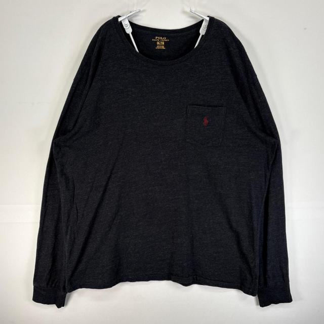古着 ポロ・ラルフローレン POLO RALPH LAUREN 長袖Tシャツ ロゴ 刺繍 クルーネック 胸ポケ XL ブラック 無地 メンズ