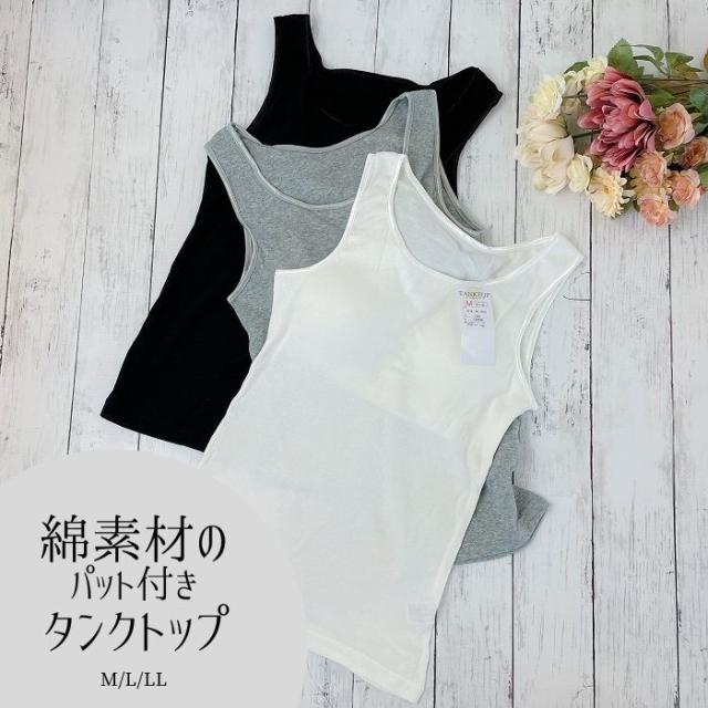 送料無料|本体綿100% タンクトップ|パット付きタンク 16036 M/L/LL/3L レディース インナー