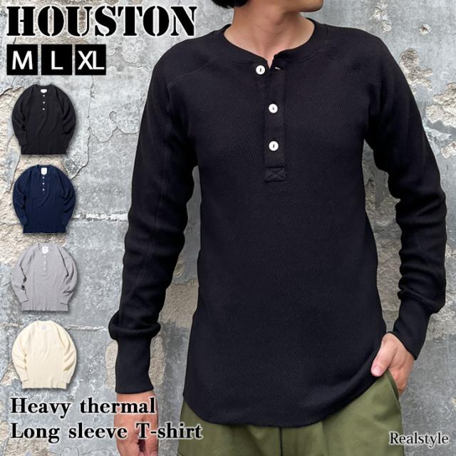 新作 ヒューストン HOUSTON Tシャツ メンズ 長袖 無地 トップス カットソー ヘビーサーマル ヘンリーネック 厚手 伸縮性 ブランド 20972