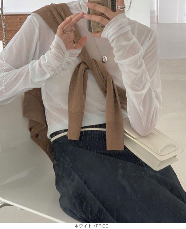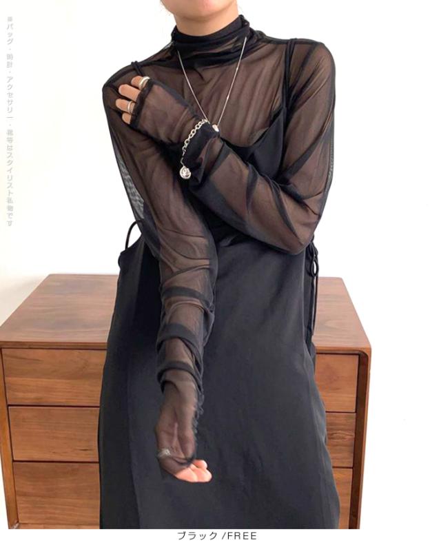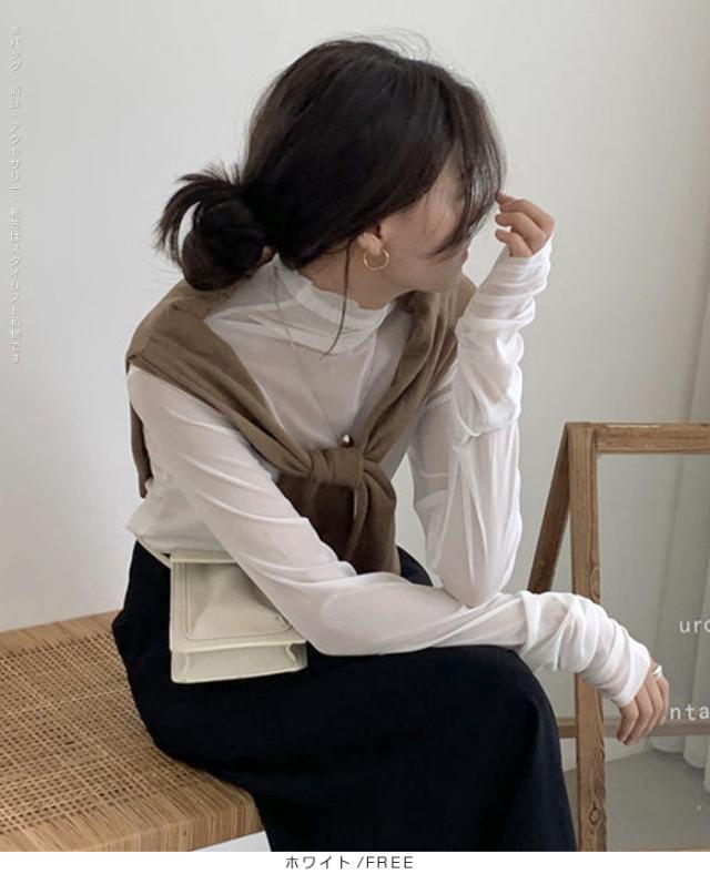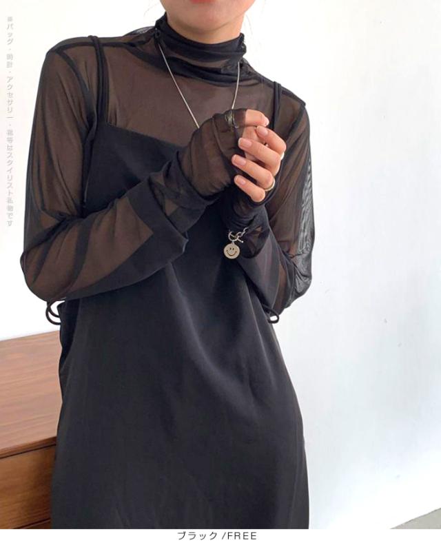 33%OFFクーポン!トップス レディース 春 秋 冬 長袖 タートルネック シアー メッシュ 袖ギャザー 華奢見せ レイヤード 重ね着 着回し ホワイト ブラック FREE【シアーメッシュタートルネックトップス】ダークエンジェル 春新作 ●即納●
