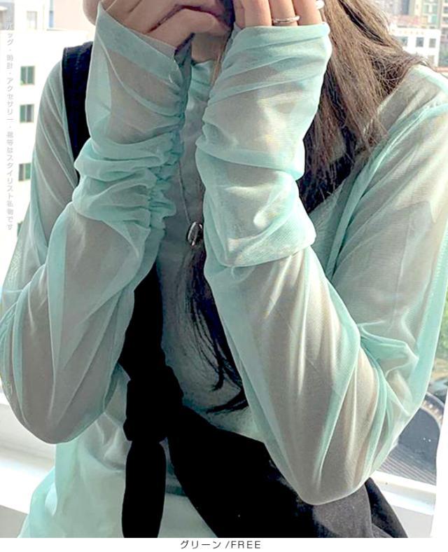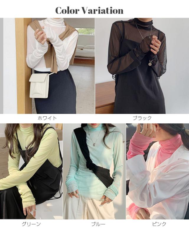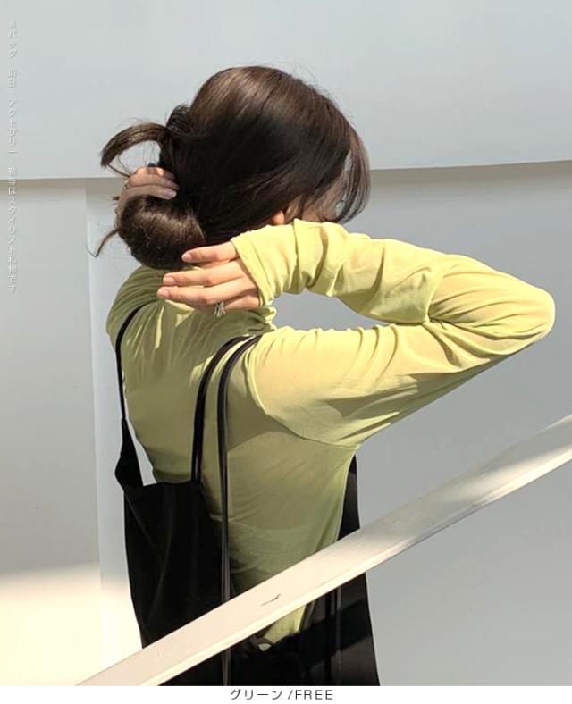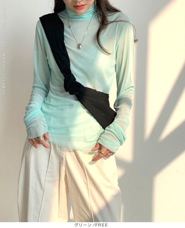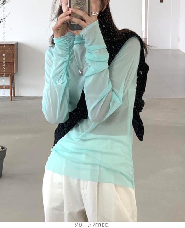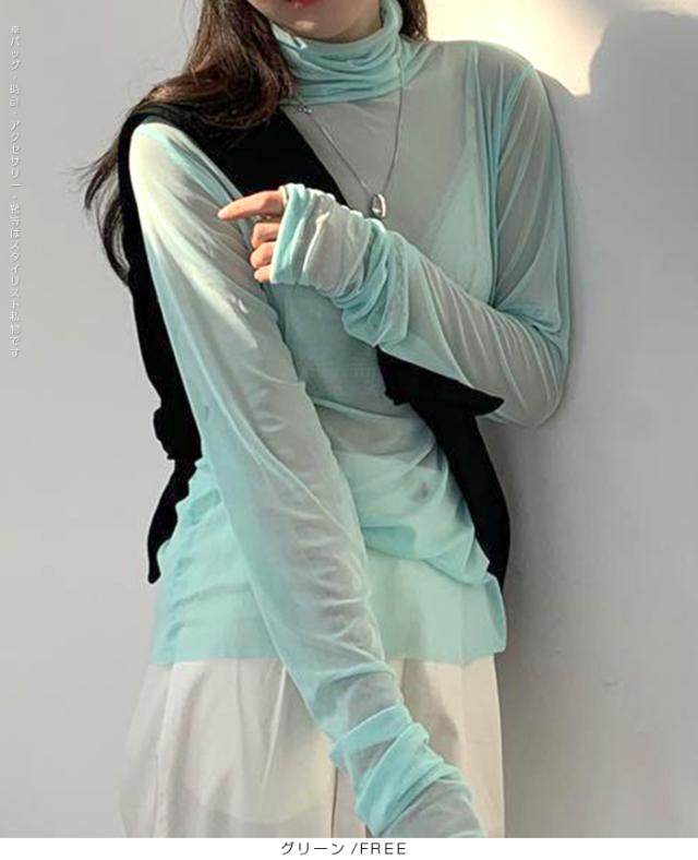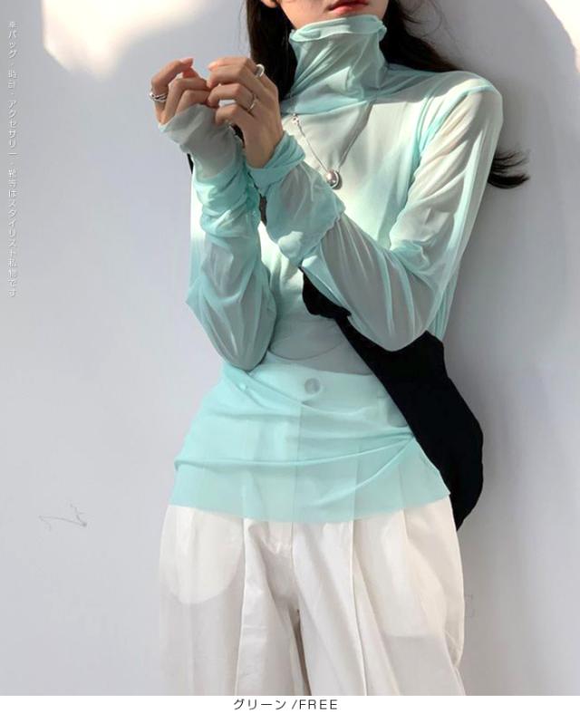 【シアーメッシュタートルネックトップス】