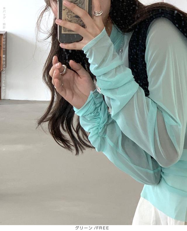 程よい透け感と袖のギャザーデザインで、1枚で着ても重ねてもおしゃれに決まります。