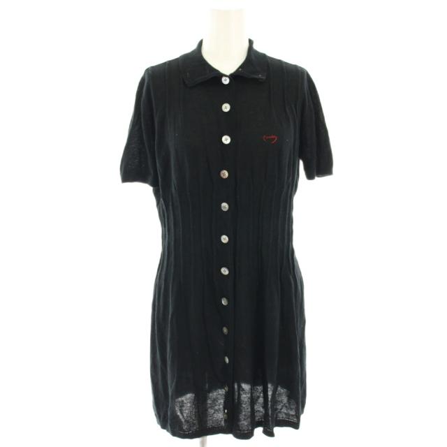 【中古】マドモアゼルノンノン コットンアクリルコードデザイン半袖ニットワンピース ミニ フロントボタン 38 黒