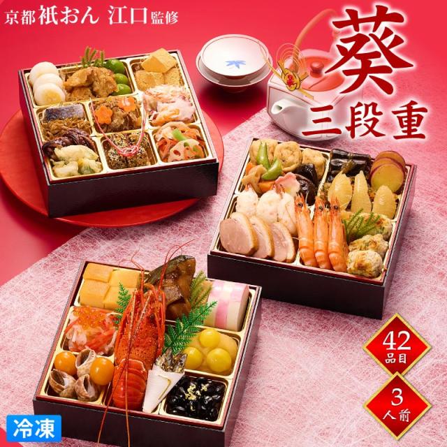 おせち2026 祇おん江口監修 「葵(あおい)三段重」 和洋おせち 三人前 42品目 3人前 核家族 おせち料理 冷凍おせち お節 御節 送料無料