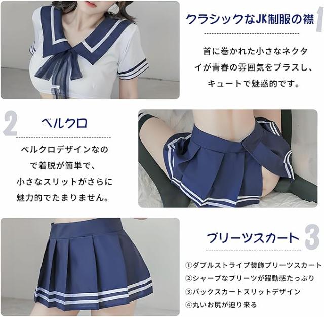 制服 コスプレ セーラー服 JK風 セクシー ランジェリー レディース 過激 可愛い 青白 5点セット 上下セット スリットスカート 半袖 Tバック 大人用 コスチューム