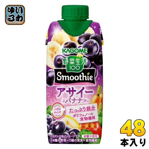 カゴメ 野菜生活100 スムージー アサイー&バナナMix 330ml 紙パック 48本 (12本入×4 まとめ買い) 野菜ジュース Smoothie 期間限定 季節限定