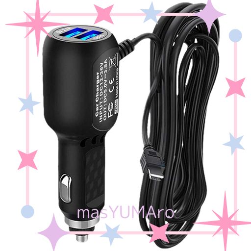 BTTIME シガーソケット ドライブレコーダー用電源ケーブル シガーソケット MINIUSB USB2ポート 2.4A+1A 12V/24V ドライブレコーダー/GPS/タブレットPC/PDA/DVD録音機などに適用