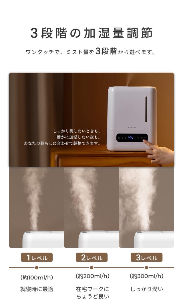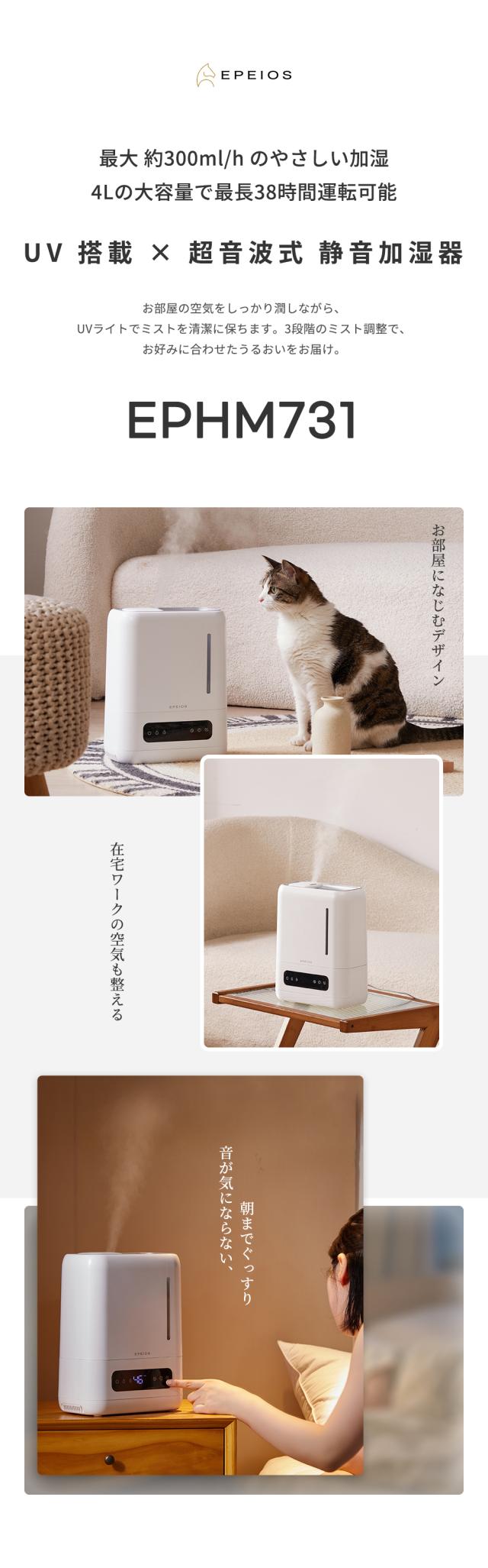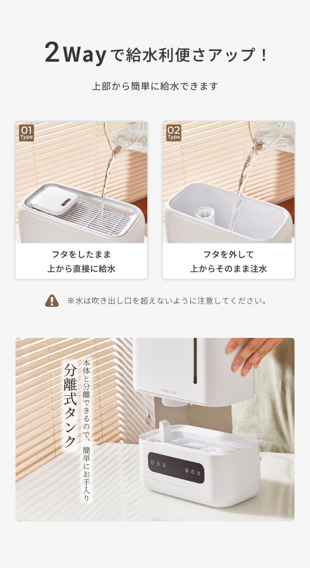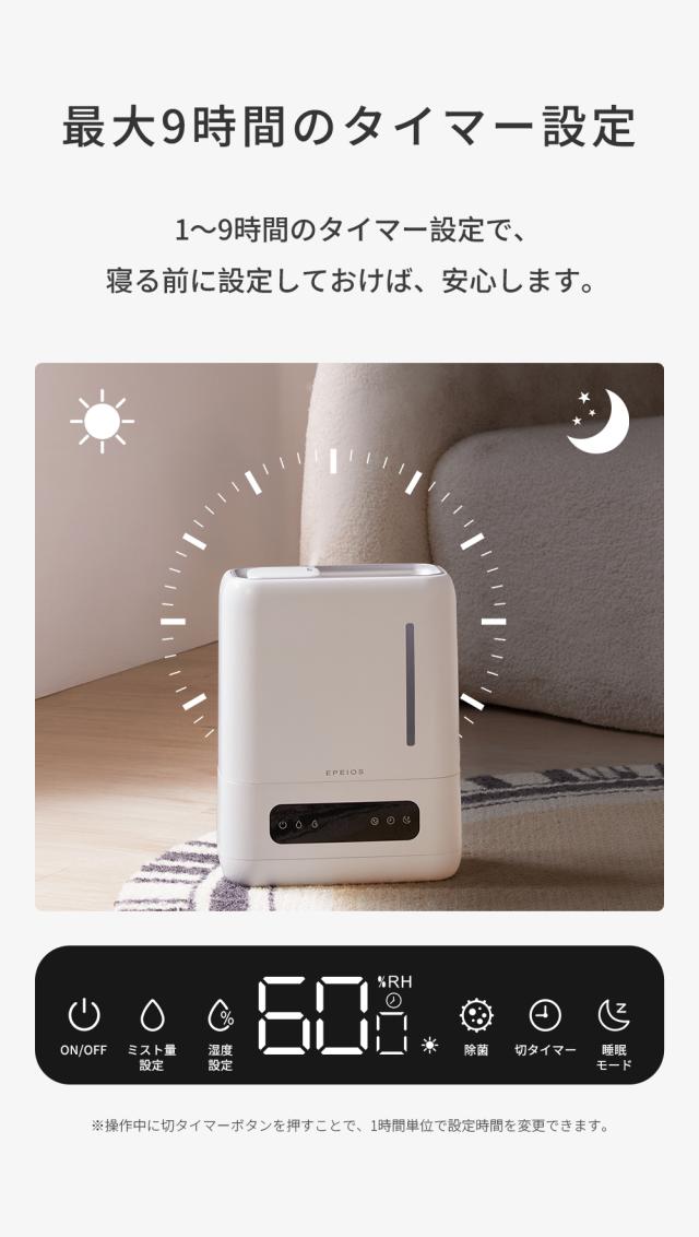 エペイオス(Epeios) 4L 加湿器 UV除菌 銀イオン抗菌 上部給水式 静音 卓上 コンパクト アロマ対応 スマート恒湿 湿度センサー タイマー付き 空焚き防止 おしゃれ 寝室 リビング用 加湿機 お手入れ簡単 乾燥対策