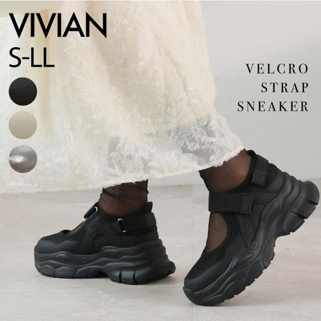 VIVIAN ヴィヴィアン 厚底 スニーカー レディース おしゃれ ダッドスニーカー ベルクロ マジックテープ ブラック 黒 白 シルバー メタリック 走れる 歩きやすい 柔らかい 大きいサイズ 小さいサイズ 通勤 疲れない 22cm 22.5cm 23cm 23.5cm 24cm 24.5cm 25cm 20代 30代 40代 50代 60代 旅行 レジャー Minkyme Minky me