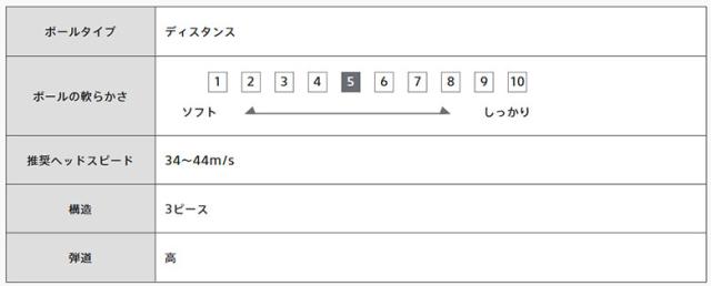 高初速による、モンスター級の飛距離を追求したソフトアイオノマーカバー3ピース構造。